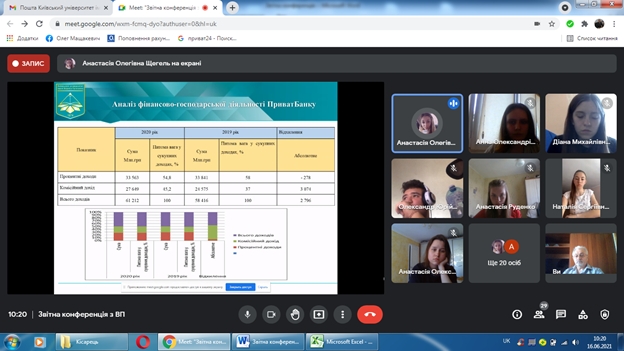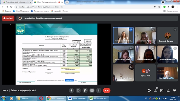 16.06.2021р. відбулась звітна конференція з виробничої практики студентів 3 курсу денної форми навчання спеціальності 072 Фінанси, банківська справа та страхування групи ФКмс-1-18-3.0д. Студенти звітували про проходження практики на підприємствах різних форми власності в різних видах господарської діяльності. Проаналізували фінансовий стан підприємств та особливості формування звітної документації з використанням сучасного програмного забезпечення.