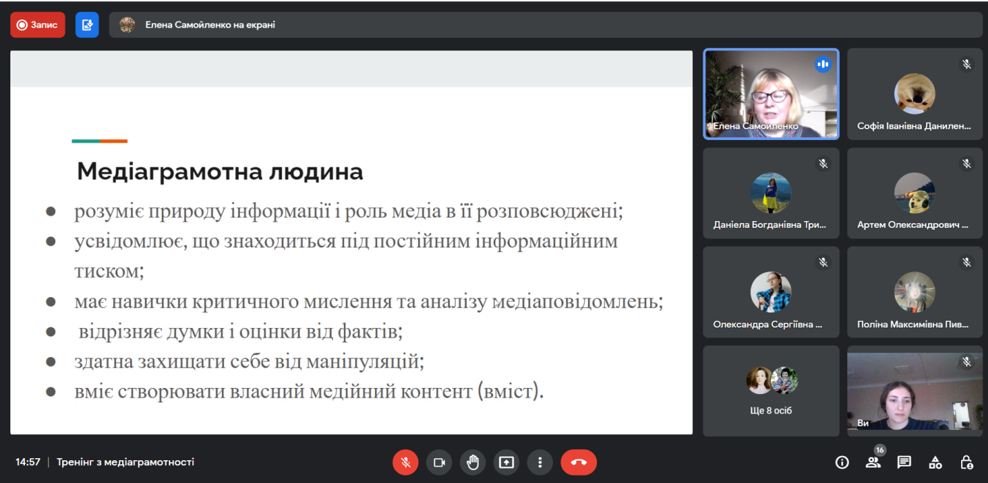 Онлайн-тренінг проводила медіатренерка ГО «Інституту демократії Пилипа Орлика» Олена Самойленко.
