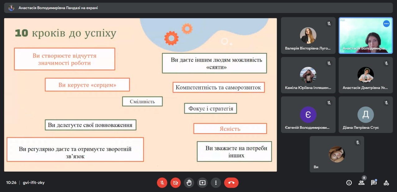05 грудня 2022 року відбулось засідання гуртка «Softskills»: для навчання та життя». Для студентів спеціальності "Фінанси, банківська справа та страхування" і "Менеджмент" було проведено тренінг на тему «Лідерство і робота в команді: 10 кроків до успіху». Студенти дізнались про те, як бути успішним лідером, якими якостями повинен володіти тощо.