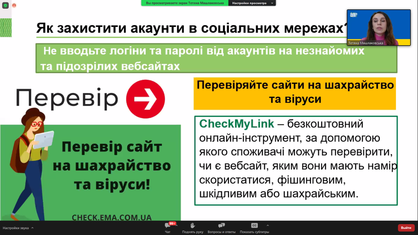 Учасники дізналися про найпоширеніші сценарії шахрайства у воєнний час, правила безпеки у кіберпросторі, як захисти свій гаджет та що робити в разі його викрадення.