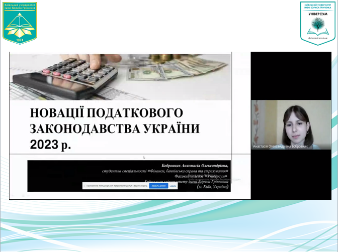 18.05.2023 р. в рамках Всеукраїнської студентської науково-практичної онлайн-конференції "Перші кроки у науці: науковий пошук студентів фахових коледжів" відбулося онлайн-засідання Секції 2 "Інноваційний розвиток економіки України: економічні, управлінські та правові аспекти". Доповіді учасників були присвячені актуальним питанням оборони України та функціонування економіки у воєнний час. Загалом до роботи секції долучилося 28 учасників.