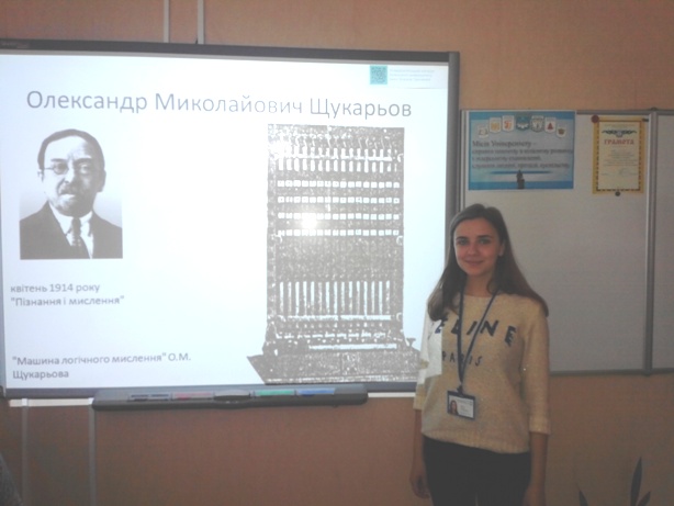 1. Олександр Миколайович Щукарьов та створена професором "машина логічного мислення" (доповідач Чижова Вікторія).