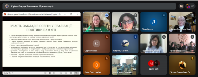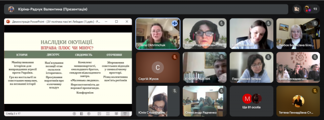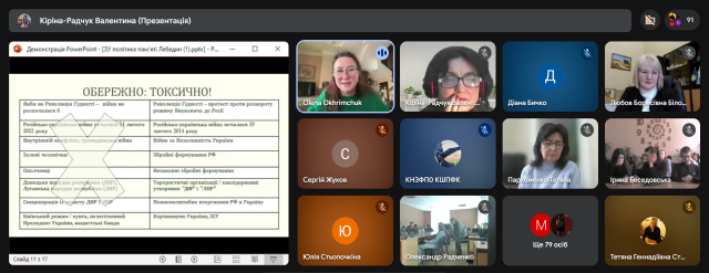 Гостьова лекція кандидата філософських наук, начальника Управління забезпечення реалізації політики національної пам'яті в регіонах та підвідомчих установ Українського інституту національної пам’яті Олени ОХРІМЧУК на тему «Протидія антиукраїнській історичній пропаганді в державній політиці національної пам’яті» була змістовною та цікавою.