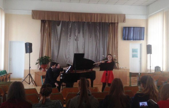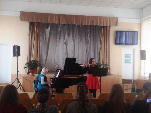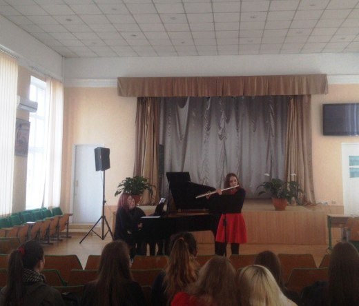 4. Г. Свиридов – Старовинний танець, перекладення для флейти з фортепіано, виконували Г. Тимах (флейта) та О. Бернадська (фортепіано), студентка III курсу;