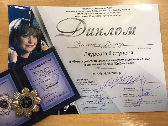 Вітаємо Калиту Владу, студентку І курсу спеціальності «Музичне мистецтво», з ДИПЛОМОМ Лауреата II премії, (викладач вокалу Маєвська Анастасія Сергіївна), яка гідно представила Університетський коледж Київського університету імені Бориса Грінченка на конкурсі, подарувавши глядачам неповторні хвилини натхнення!