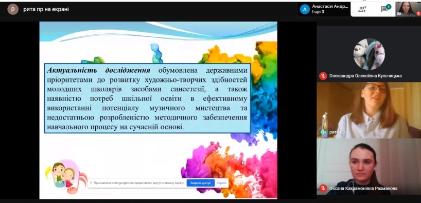 23 травня 2020 року на платформі Google Meet відбувся захист курсових робіт з музичного виховання з методикою навчання студентами 4 курсу спеціальності "Початкова освіта".