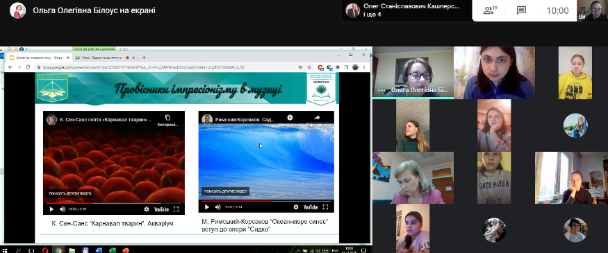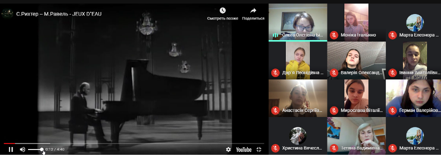 3 грудня 2020 року відбулося відкрите заняття викладача Білоус О.О. з навчальної дисципліни «Світова музична література» на тему «Естетика імпресіонізму в творчості Клода Дебюссі та Моріса Равеля» (група ММмс-1-18-4.0д.).