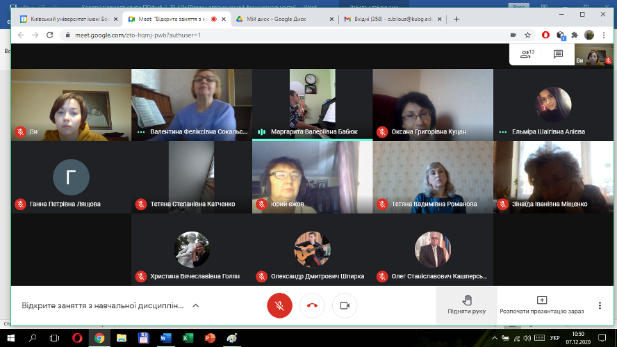 7 грудня 2020 року відбулося відкрите заняття викладача Сокальської В.Ф. з навчальної дисципліни «Основний музичний інструмент» на тему «Формування у студентів професійно-виконавських компетентностей на заключному етапі роботи над музичними творами» .