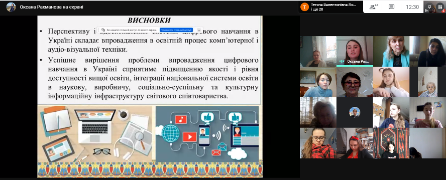 У ході зустрічі було здійснено аналіз інструментів цифрового навчання в освітньому процесі, окреслено виклики та перспективи такого навчання, популяризовано впровадження передового інноваційного педагогічного досвіду в практику мистецької освіти.