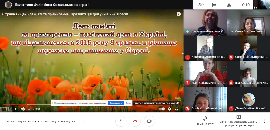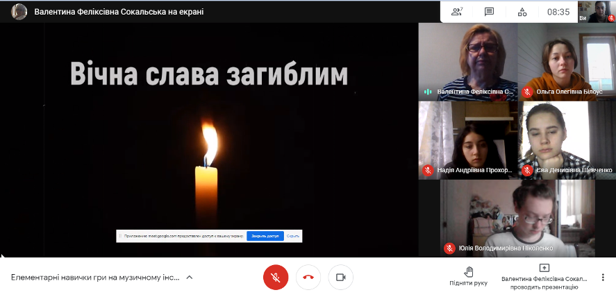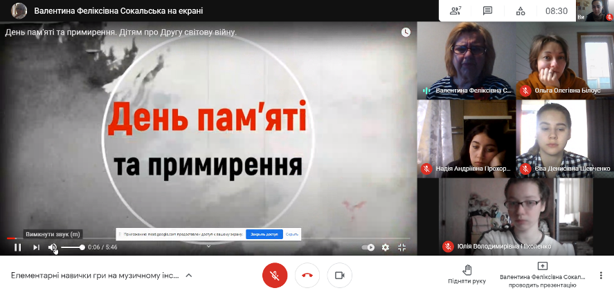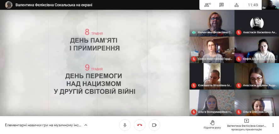 8 травня 2021 року викладачі циклової комісії музики і хореографії на заняттях з Елементарних навичок гри на музичному інструменті зі студентами 2 курсу спеціальності «Початкова освіта» долучилися до Дня пам’яті та примирення та Дня перемоги над нацизмом у Другій світовій війні і провели Хвилину вшанування героїв, які віддали свої життя у боротьбі за мир і незалежність України.