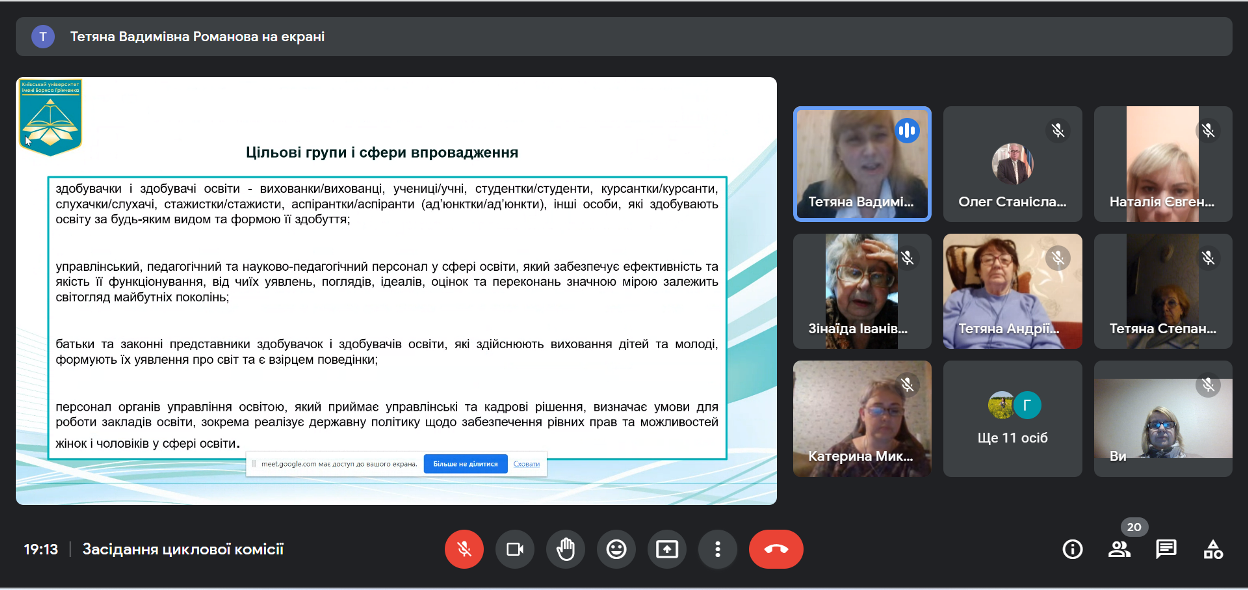 На засіданні було обговорено Розпорядження Кабінету Міністрів України від 20 грудня 2022 р. №1163-р «Про схвалення Стратегії впровадження гендерної рівності у сфері освіти до 2030 року та затвердження операційного плану заходів на 2022—2024 роки з її реалізації».