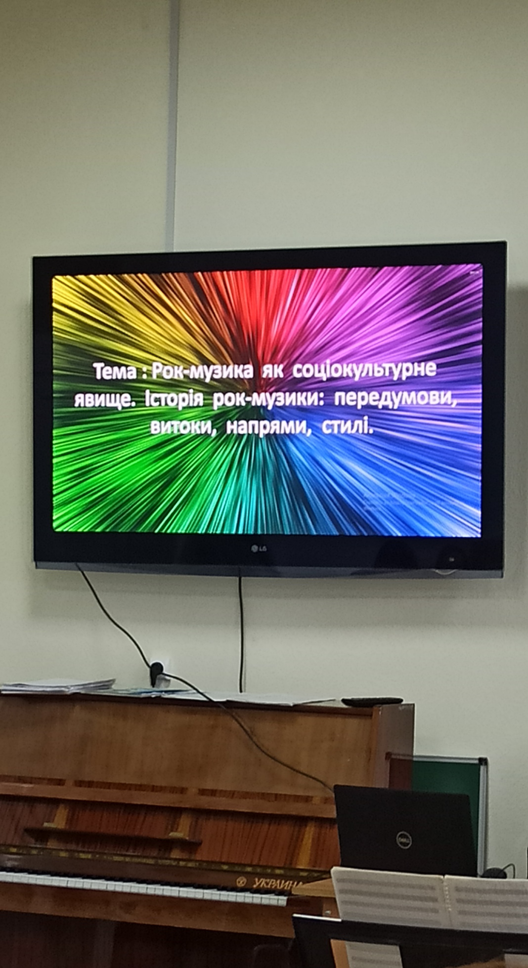 19.12.2023 року відбулося відкрите заняття викладача Гончарова А.Ю. з навчальної дисципліни «Напрями та стилі сучасного музичного мистецтва» на тему «Рок-музика як соціокультурне явище. Історія рок-музики, витоки, передумови, напрями, стилі». Заняття проводилося зі студентами групи ММфмб-1-20-4.0д.