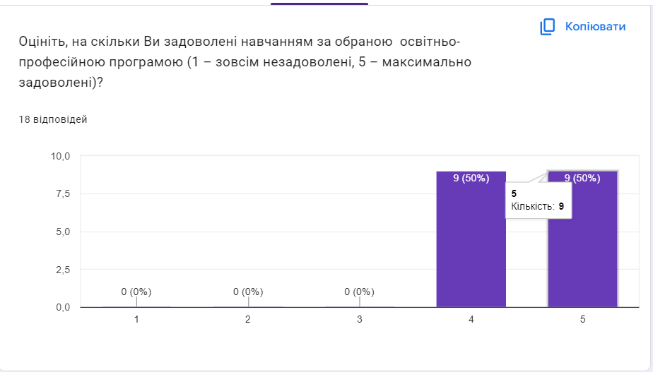 - аналіз результатів анкетування студентів 1 курсу спеціальностей «Музичне мистецтво» та «Хореографія» щодо задоволеності якістю освітнього процесу;