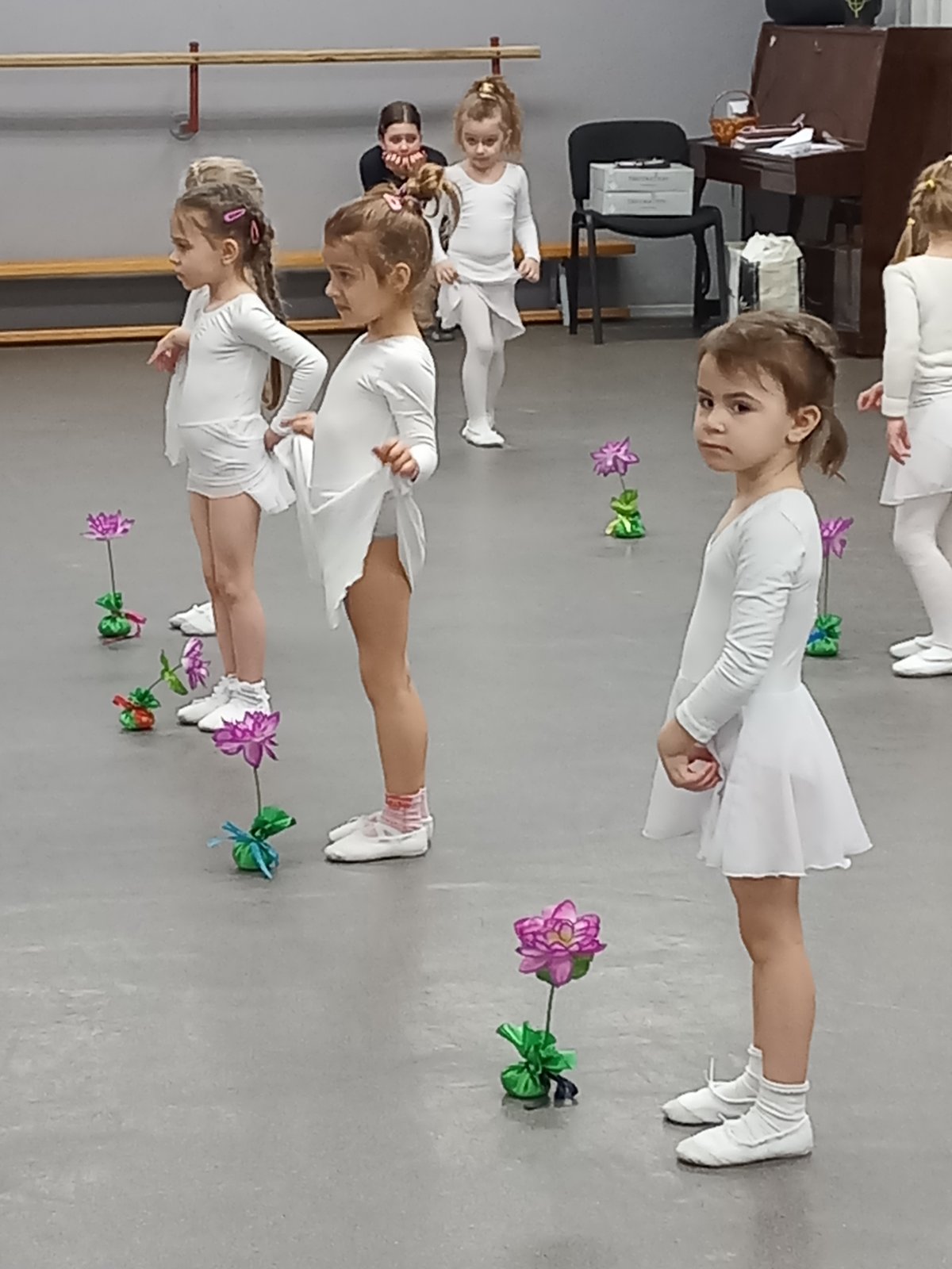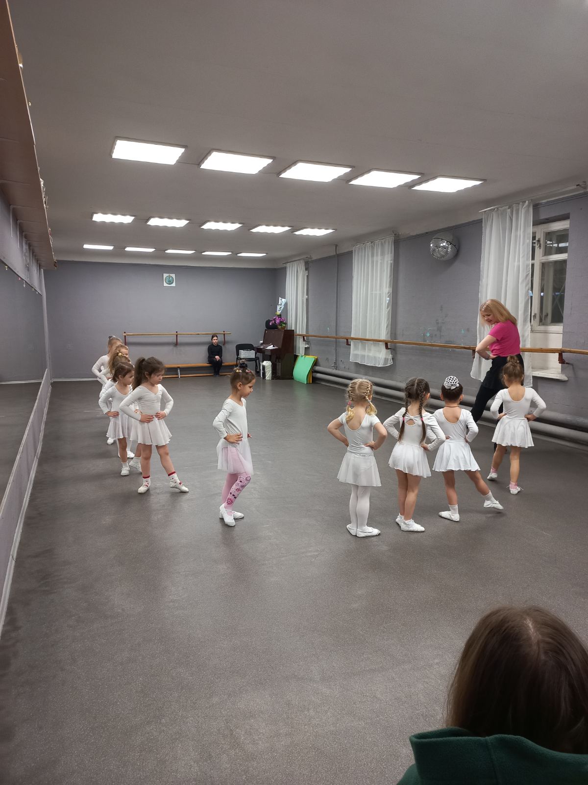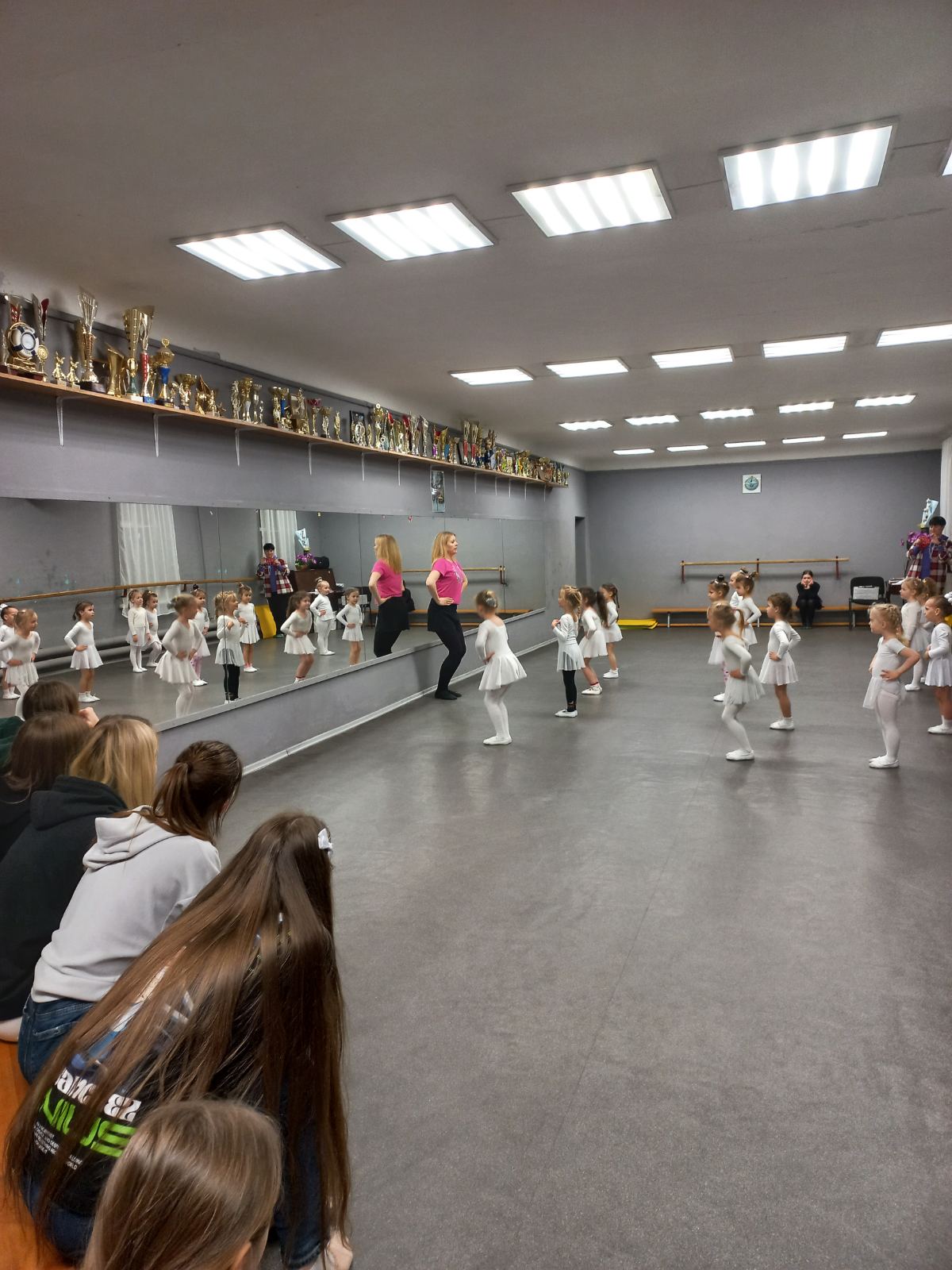 Студенти із зацікавленістю спостерігали за перебігом заняття в молодшій віковій групі (3-5 років), яке проводила керівник колективу Скрипник Є.В. Досвідчений педагог-хореограф поділилася знаннями, вміннями; надала практичні поради щодо організації занять в різних вікових групах дитячого хореографічного колективу.