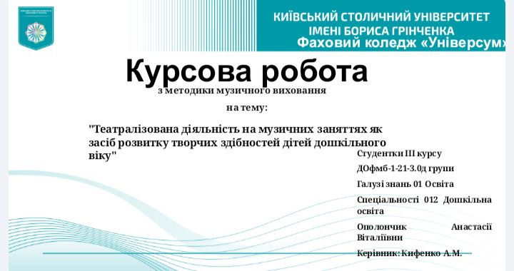 25 травня 2024 року відбувся захист курсових робіт з методики музичного виховання студентами 3 курсу спеціальності «Дошкільна освіта».