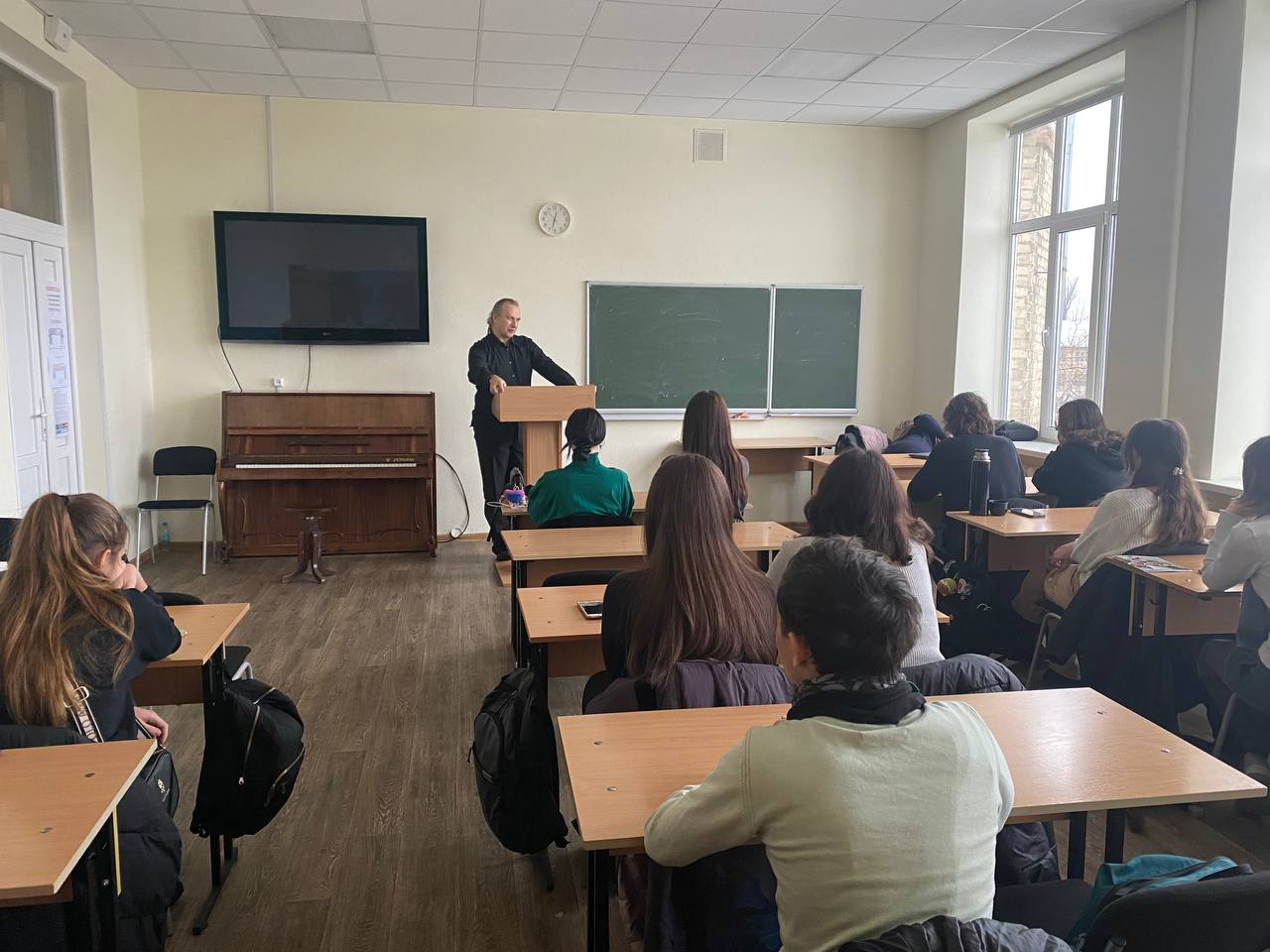 10 грудня 2024 року, відбулася інтерактивна лекція на тему "Куплетна форма: наскільки добре ми її знаємо". Ідея інтерактивної лекції полягає у використанні актуальних знань студентів для їхньої систематизації. На початку лекції студентам було запропоновано самостійно скласти три списки - "народні пісні", "колядки" та "сучасні естрадні українські пісні", до списку мали увійти пісні, які студенти можуть самостійно заспівати, тобто пам'ятають і текст, і мелодію. Спираючись на ці списки, лектор підводив студентів до самостійних узагальнень щодо музичної та поетичної структури кожного типу пісень. Окрім структури пісень, на лекції розглядалися також ідейний зміст та емоційне наповнення близько десяти пісень різних жанрів.
