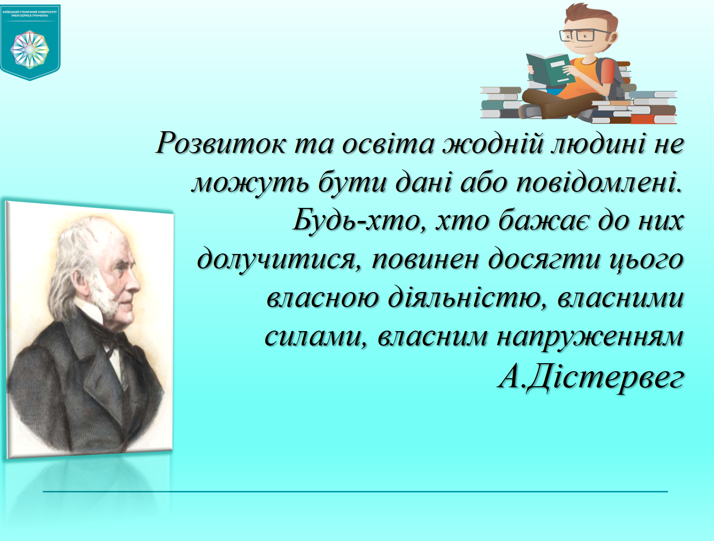 Епіграфом до теми семінару стала цитата видатного німецького педагога-демократа, послідовника Песталоцці Адольфа Дістервега: «Розвиток та освіта жодній людині не можуть бути дані або повідомлені. Будь-хто, хто бажає до них долучитися, повинен досягти цього власною діяльністю, власними силами, власним напруженням».