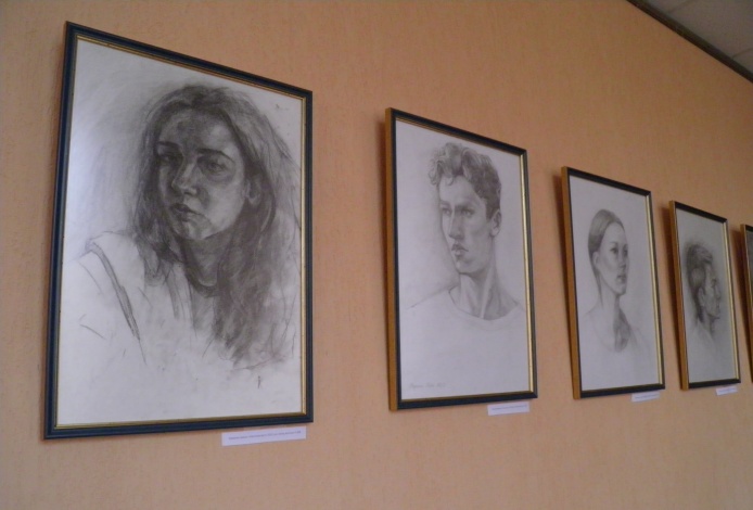 На цій виставці представлені роботи з рисунку, виконані студентами у різних техніках. Рисунки виконані олівцем та вугіллям. Тут ми можемо побачити і рисунок гіпсової голови, і копію з роботи відомого художника, і портрети з натури.
