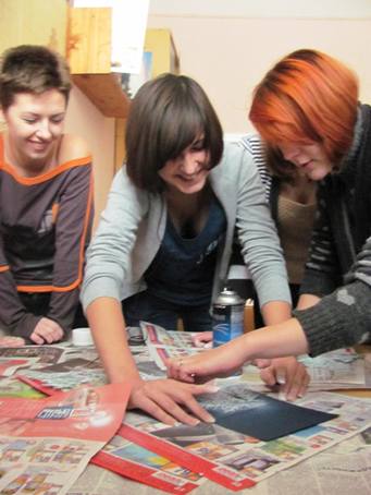 газета, пензлі, макетний ніж, ножиці тощо.
