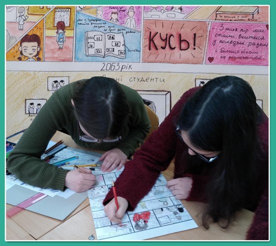 Студенти у своїх коміксах відобразили проблеми навчання, кохання, любов до музики, родинні зв’язки поколінь через зміни, які відбуваються у житті протягом десятиліть.