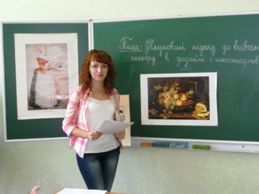 Цікавий і змістовний матеріал представили студенти: Малик В. «Вплив кольору на людину», Байбарза М. «Специфіка кольору в живопису», Підлісна О. «Колір в народному мистецтві як символ і знак», Фарад Д. «Колір і декоративне мистецтво», Щербина В. «Колір в творчості імпресіоністів: Е. Мане».