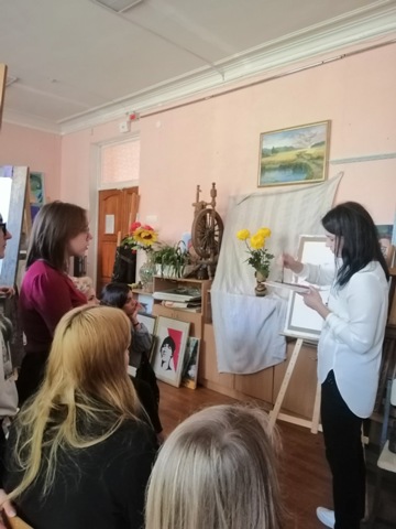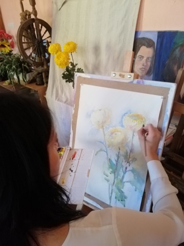 Майстер-клас з акварельного живопису «Осінні квіти» 16 жовтня 2019 року в рамках декади циклової комісії відбувся майстер-клас з акварельного живопису для студентів та викладачів Університетського коледжу.Модератор заходу: О.М. Овчаренко