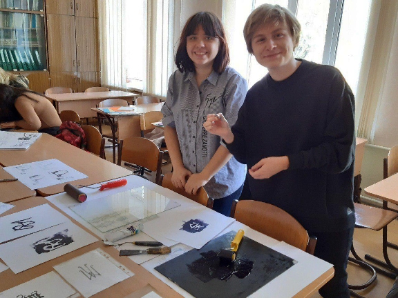 17 жовтня 2019 року в рамках декади циклової комісії студентки спеціальності "Дизайн" Карпович Анастасія та Чикулай Анастасія провели для студентів Університетського коледжу майстер-клас з техніки друкованої графіки.