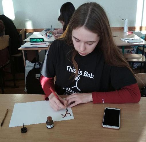 6 грудня 2019 року студенти ІІІ курсу Університетського коледжу Київського університету імені Бориса Грінченка спеціальності «Дизайн» взяли участь в практикумі «Пластика модерну в каліграфічних розчерках».