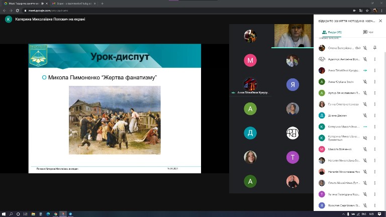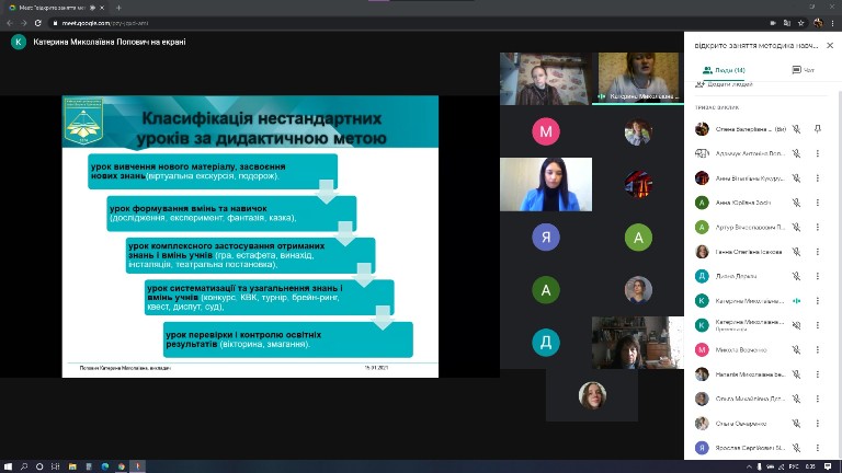 15 cічня 2021 року в Фаховому коледжі Київського університету імені Бориса Грінченка відбулось відкрите заняття викладача Попович К.М. з дисципліни «Методика навчання образотворчому мистецтву» на тему: «Сучасні нестандартні уроки образотворчого мистецтва в основній школі» (група ОМмс-1-17-4.Од).