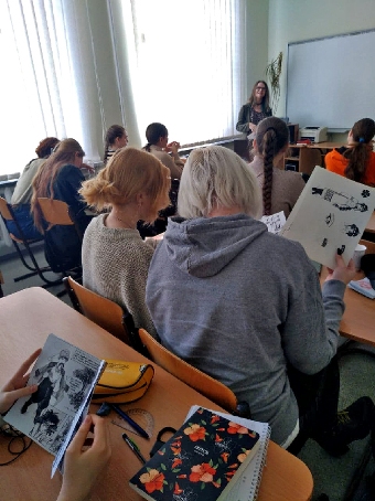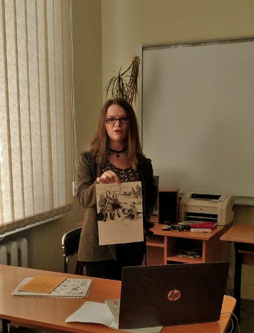 25.02.2021 року в Фаховий коледж «Універсум» Київського університету імені Бориса Грінченка завітала випускниця коледжу Савіч Дар’я, авторка коміксів «Біс на вечорницях» за оповіданням Г. Данилевського та «Історичні пригоди за часів Київської Русі». Під час зустрічі студенти 1 та 3 курсу спеціальності «Дизайн» дізнались методичні та практичні поради щодо створення історії у стилі коміксів.
