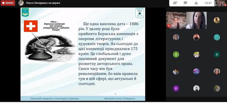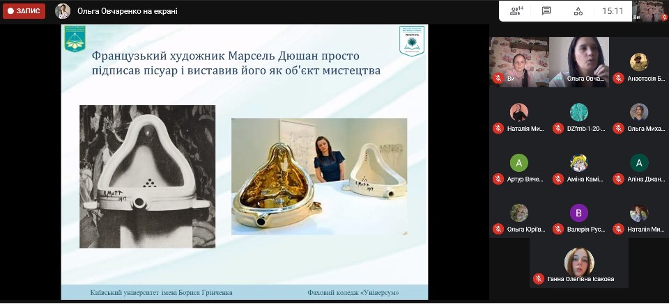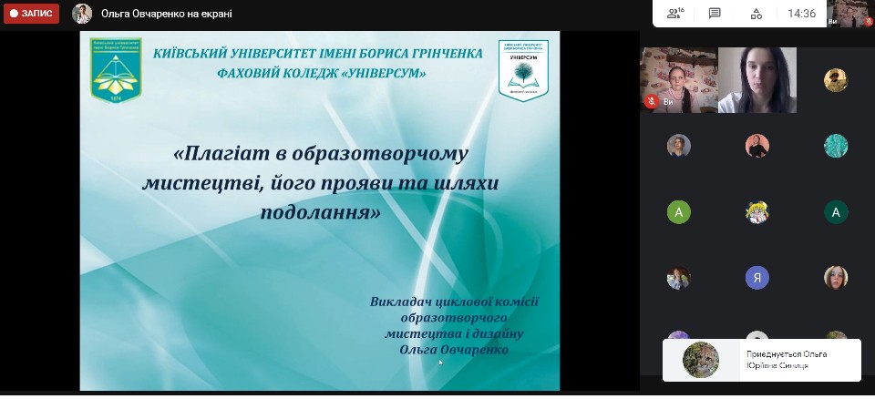 29 квітня 2021 року голова циклової комісії образотворчого мистецтва і дизайну Овчаренко Ольга Миколаївна запросила всіх охочих приєднатись до онлайн-вебінару «Плагіат в образотворчому мистецтві, його прояви та шляхи подолання».