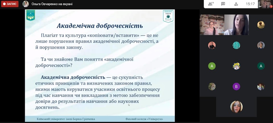 Мета зустрічі - ознайомлення учасників заходу з поняттям «плагіат», його місцем в образотворчому мистецтві та шляхами подолання. Також під час зустрічі активно розглядалось питання популяризації академічної доброчесність серед учасників освітнього процесу.