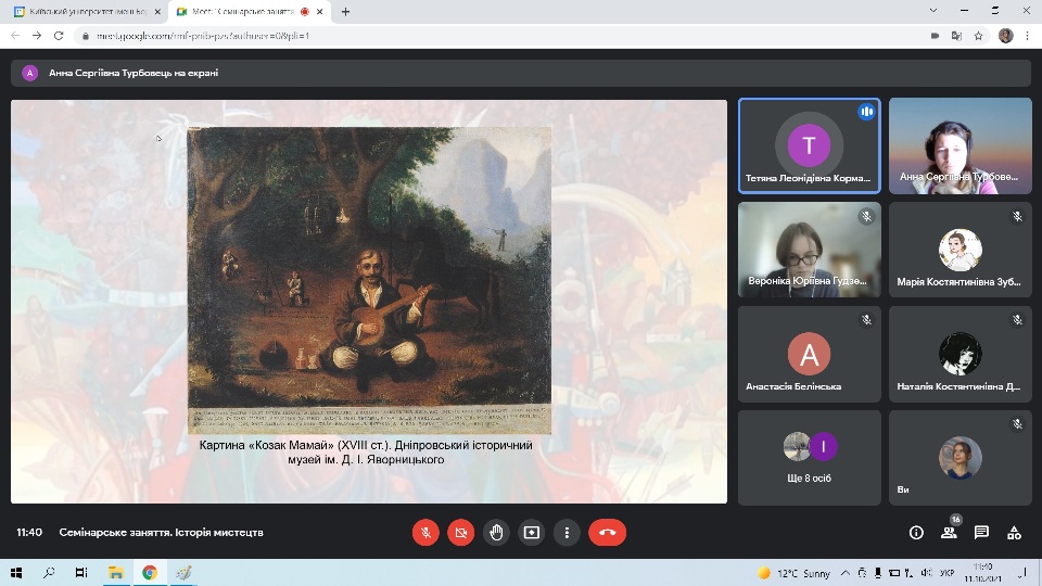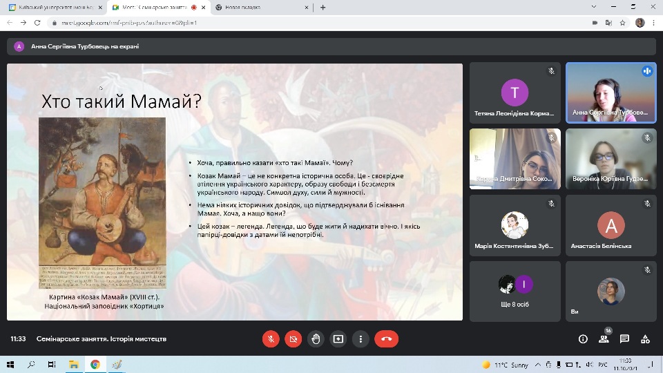 "Козак Мамай - видатний шедевр українського малярства" - саме таку назву обрали для заходу приуроченого до Дня Українського Козацтва, Дня захисників і захисниць України, який відбувся 11 жовтня 2021 року в Фаховому коледжі "Універсум" Київського університету імені Бориса Грінченка, викладач історії мистецтв Кормакова Тетяна Леонідівна разом зі студентами IV курсу спеціальності "Дизайн". Під час заходу учасники та відвідувачі проаналізували образ козака Мамая в творах мистецтва та його значення для історії та культури України.