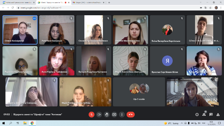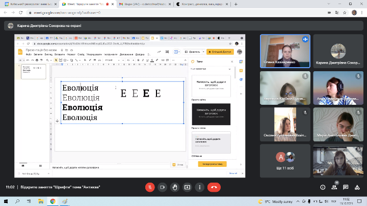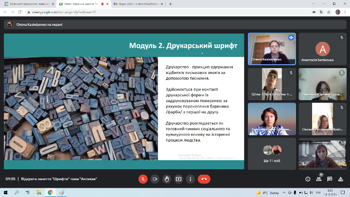 13 жовтня 2021 року викладач циклової комісії образотворчого мистецтва і дизайну Фахового коледжу “Універсум” Київського університету Бориса Грінченка Казіміренко Олена Валеріївна провела відкрите заняття з предмету “Шрифти” на тему “Антиква” для студентів групи ДЗмс-1-18-4.О.д.