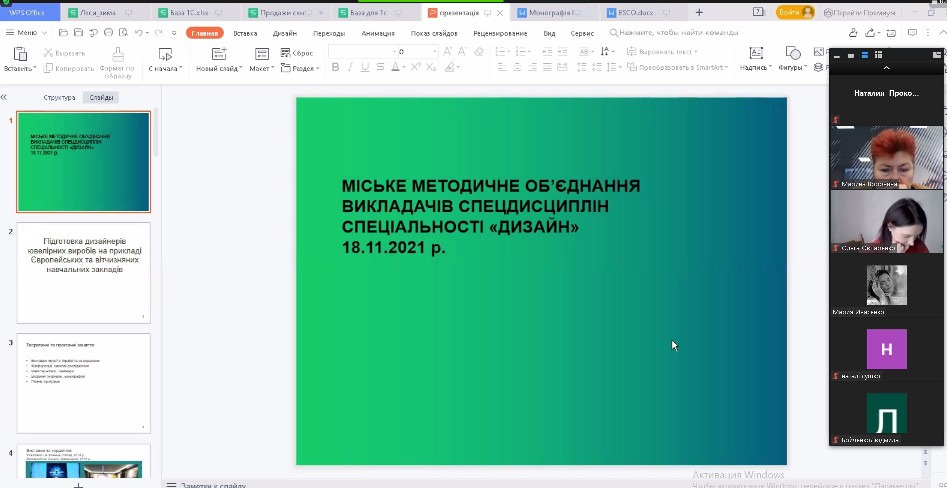 18 листопада 2021 року відбулося чергове засідання Методичного міського об’єднання викладачів спецдисциплін спеціальності “Дизайн” міста Києва, в якому традиційно взяли участь викладачі Фахового коледжу “Універсум” Київського університету імені Бориса Грінченка Овчаренко О. М., Казіміренко О. В.