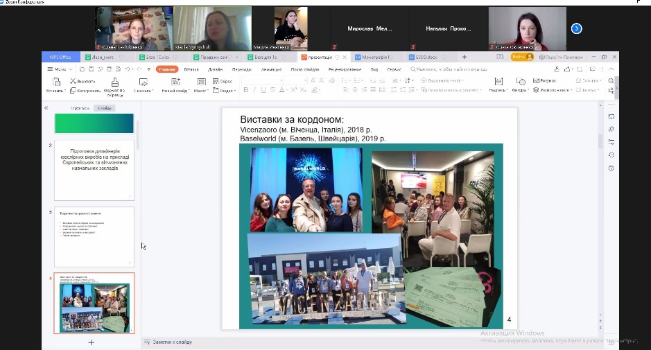 В рамках засідання відбувся виступ Марії Віннічук, кандидата технічних наук, доцента, ректора “Disaini ja tehnoloogia acadeemia: Tallinn, Harju maakond, EE” на тему “Підготовка дизайнерів ювелірних виробів на прикладі європейських і вітчизняних навчальних закладів”. Під час доповіді було проаналізовано сучасний стан у вихованні фахівців ювелірної галузі як в європейських, так і в українських навчальних закладах.
