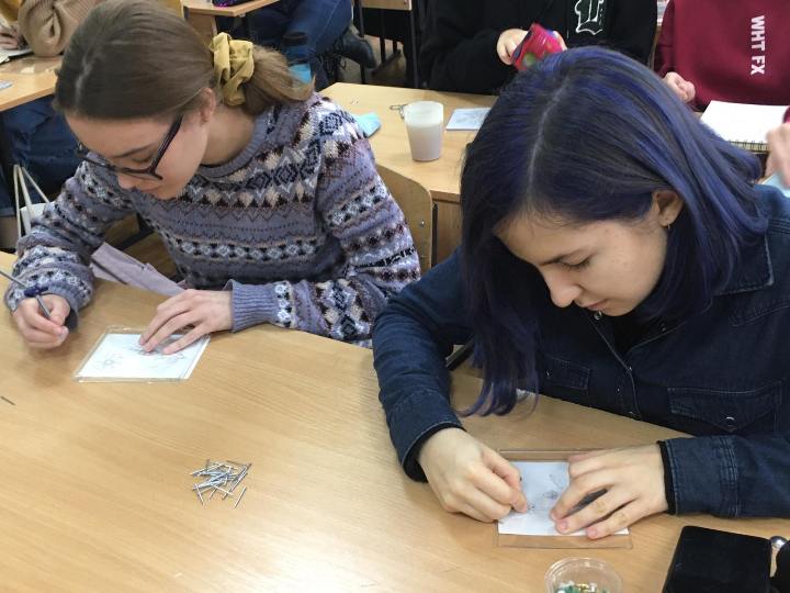 02 грудня 2021 року викладач циклової комісії образотворчого мистецтва і дизайну Фахового коледжу "Універсум" Київського університету імені Бориса Грінченка Шеменьова Юлія Володимирівна провела відкрите заняття з дисципліни "Художньо-прикладна графіка" на тему "Виконання гравюри у техніці "суха голка" для студентів групи ДЗмс-1-19-4.0д.