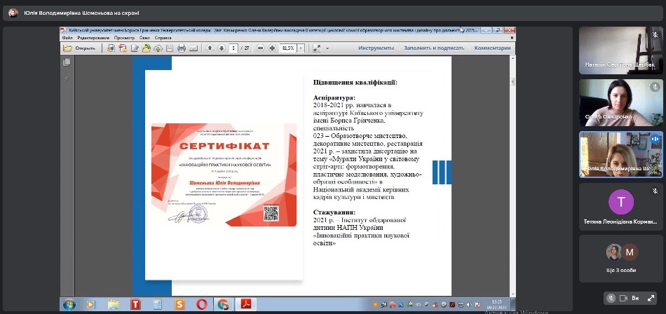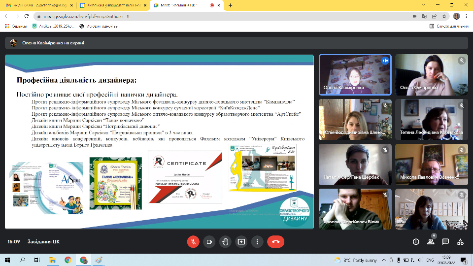 9 лютого 2022 року відбулося засідання ЦК образотворчого мистецтва і дизайну.