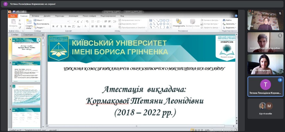 На зустрічі було розглянуто та затверджено атестаційні матеріали Казіміренко О.В, Кормакової Т.Л., Шеменьової Ю.В., Гнатюк Л.Р., викладачів які атестуються в 2021-2022 н. р.