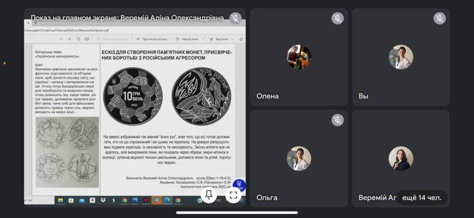 Студентки групи ДЗмс-1-19-4.О.д Фахового коледжу “Універсум” Київського університету імені Бориса Грінченка Єлісєєва Вероніка, Малюта Аліна, Гурська Владислава та Падій Марія взяли участь у конкурсі ескізів, оголошеному Національним банком України 15 березня 2022 року, зі створення пам’ятних монет, присвячених боротьбі з російським агресором.