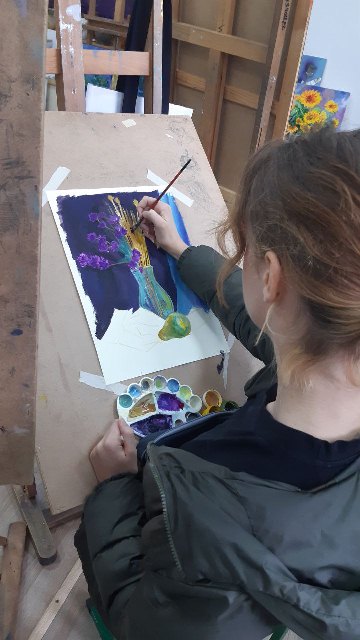 28 вересня 2022 року з нагоди Дня Університету студенти 3 курсу спеціальності “Образотворче мистецтво” відвідали майстер-клас викладача коледжу Шеменьової Юлії “Натюрморт на пленері”, де засвоїли нові техніки акрилового живопису.