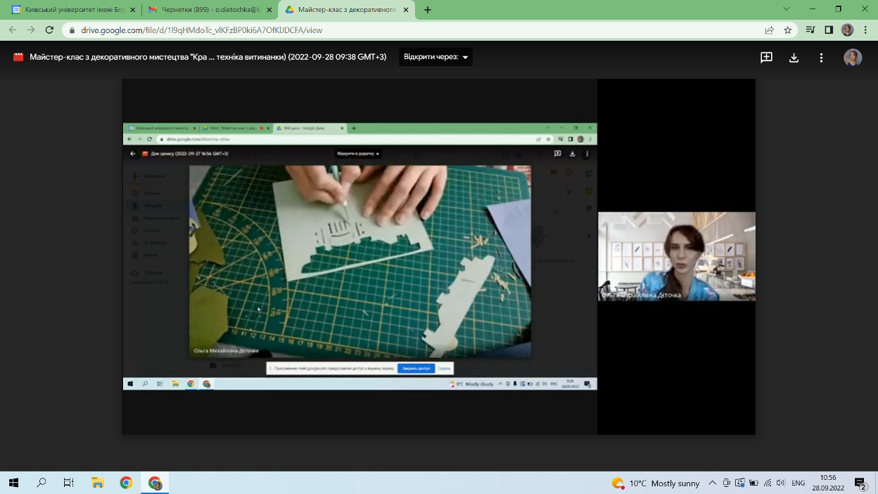 Присутні ознайомилися з особливостями виконання об'ємної композиції у техніці витинанки. У ході майстер-класу охочі мали змогу спробувати створити власну композицію на основі запропонованих образів і техніки.