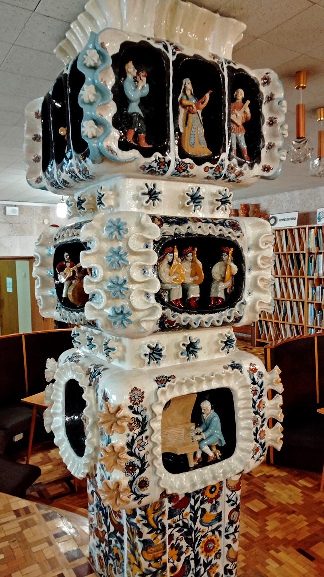 Надзвичайно цікавою творчою знахідкою є виконане з шамоту панно на зовнішній стіні кімнати казок, де зображено різноманітних героїв народних і літературних казок. При будівництві були використані найкращі оздоблювальні матеріали: з Вірменії надійшли рожеві плитки для оздоблення стін, з Узбекистану - мармур. Єреванські майстри виготовили вітражі для вікон, а прикарпатські меблярі змайстрували читацькі столики спеціальної конструкції, стелажі та книжкові вітрини; чудовий паркет було отримано з Ківерців Волинської області.