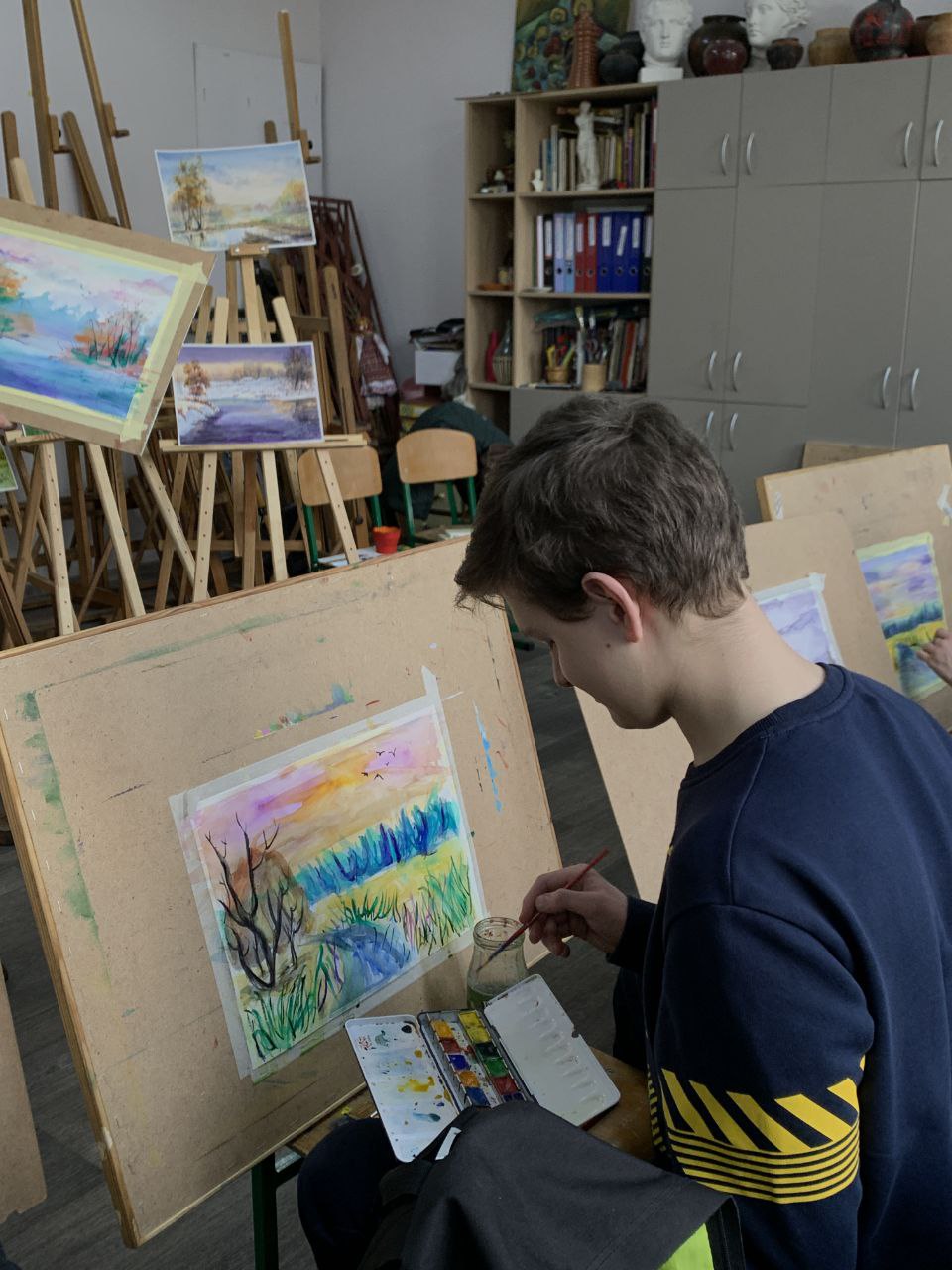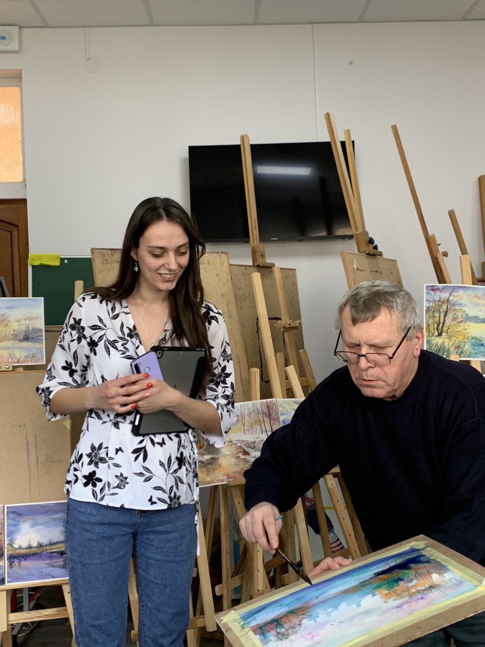 Студенти ІІ курсу спеціальності “Дизайн”, а також всі гості мали нагоду прослідкувати за роботою майстра та спробувати відтворити український пейзаж засобами акварельного живопису.