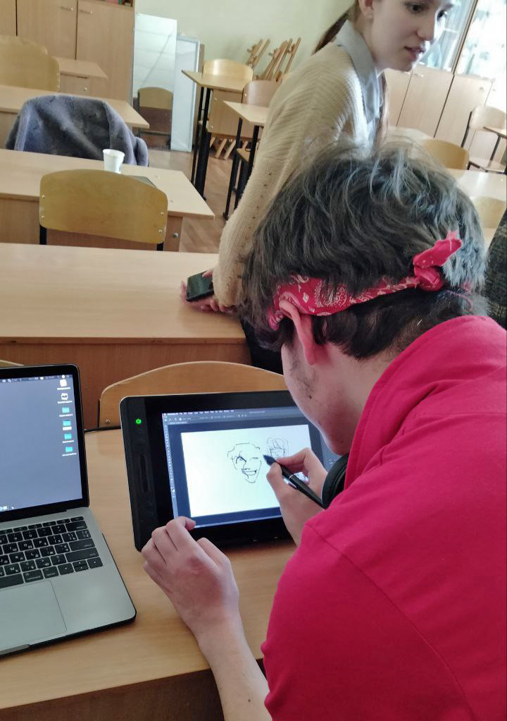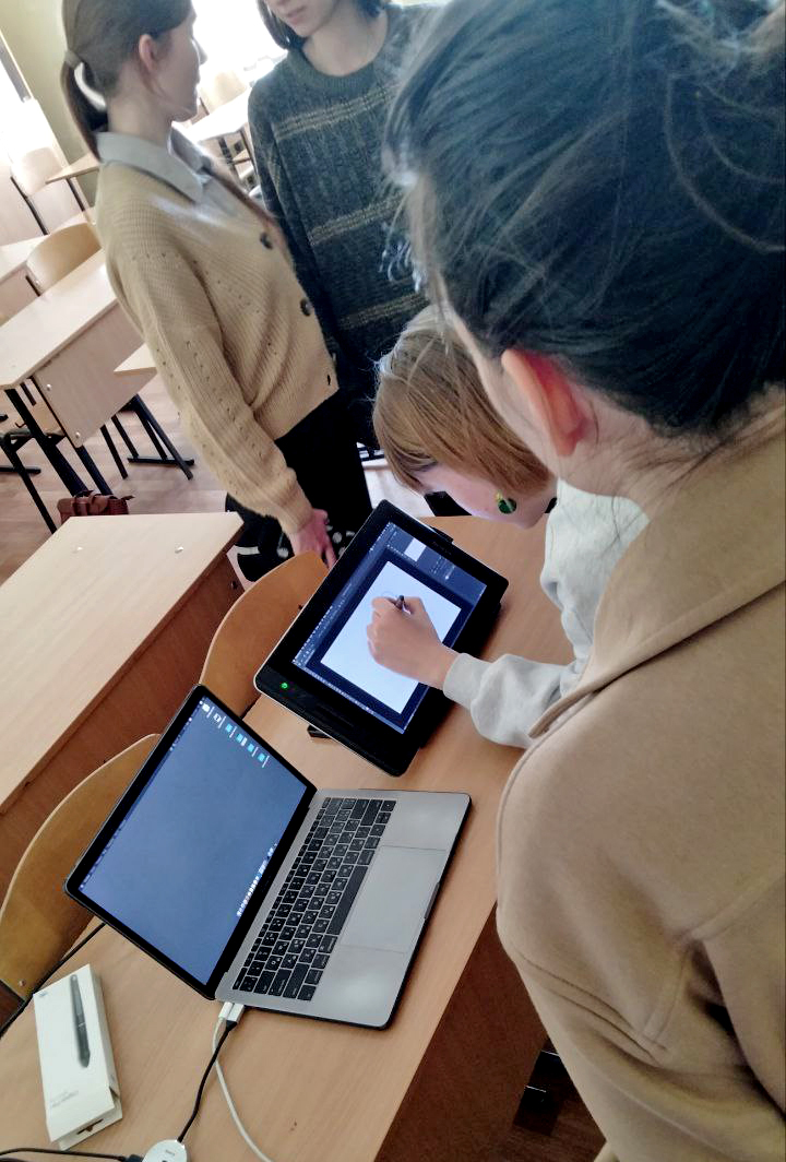 Під час практикуму студентки та студенти мали можливість попрацювати на екранному графічному планшеті, а також створити невеликі власні ілюстрації.