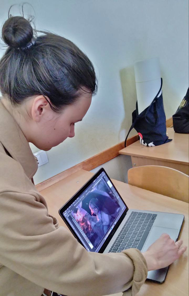 Анастасія поділилася зі студентами власним досвідом роботи у сфері комерційної ілюстрації, а також дала корисні поради щодо роботи над мистецькими проєктами.