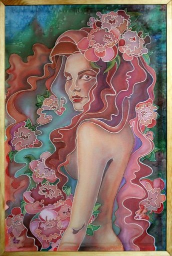 Як розповідає сама юна художниця: «Для мене процес створення батику – це щось чарівне, я ніби поринаю у магічний світ, нічого не помічаючи навколо себе. Я повністю занурююсь в роботу та отримую неймовiрне задоволення. Створення даної експозиції розпочалося з батику «Муза під зорями». На створення цією композиції мене надихнув образ сучасної дівчини – беззахисної, ніжної, але в той же час неймовірно рішучої та сміливої. Натхнення вистачило й на решту картин...»