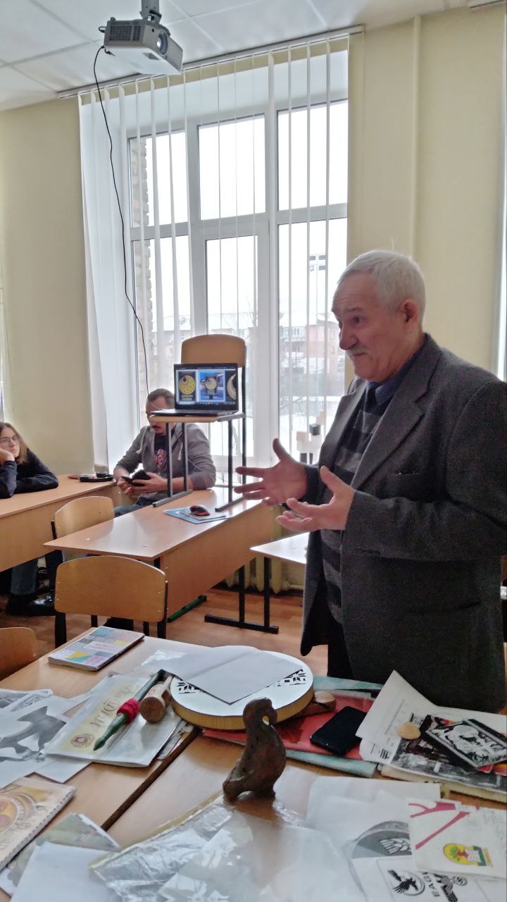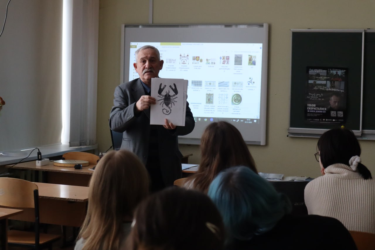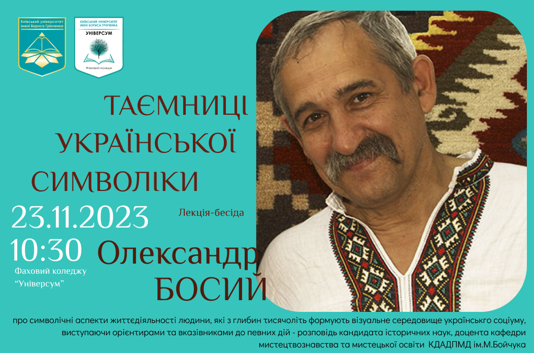 23 листопада 2023 року студенти та викладачі спеціальності Графічний дизайн мали нагоду зустрітись та поспілкуватись з Олександром Босим, кандидатом історичним наук, доцентом кафедри мистецтвознавства та мистецької освіти КДАДПМД ім.М.Бойчука, дослідником української символіки, автором книг та посібників присвяченим цій темі.