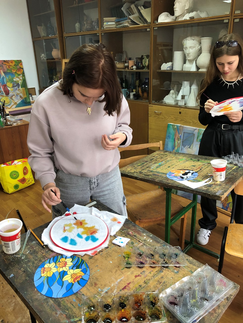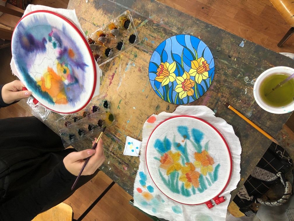 Студентки Фахового коледжу "Універсум", виконали невеликі розписи на тканині на рослинну тематику. Отримали досвід роботи у техніці батіку, та дізнались різні нюанси роботи з тканиною.