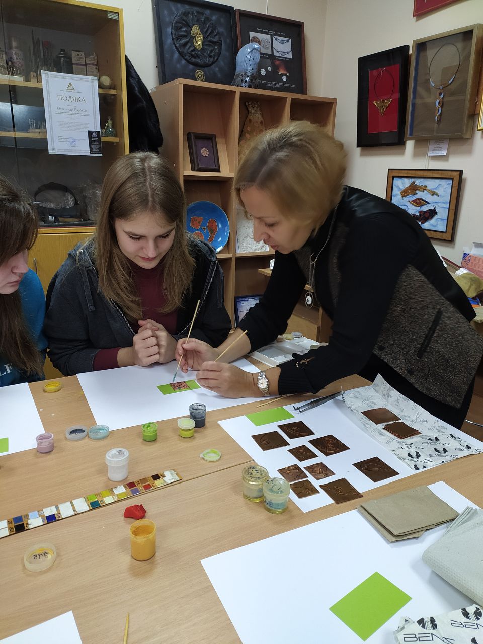 06 грудня студентки 3 курсу спеціальності Образотворче мистецтво разом з викладачкою Людмила Соченко відвідали майстер-клас від Олександри Барбалат на Факультет образотворчого мистецтва і дизайну Університету Грінченка з "гарячої емалі". Студенти дізнались коротку історію виникнення ювелірного мистецтва та деякі тонкощі даної справи. Також, студентки змогли випробувати себе в техніці гарячої емалі, виконавши кілька композицій на міді, всі отримали гарний результат та бажання детальніше вивчити ювелірну справу в майбутньому.